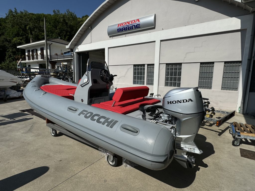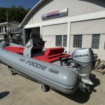 lunghezza mt 5,10 larghezza mt 2,50 peso 380 kg portata persone n. 10 cat C dotazione di serie: serbatoio carburante 90lt scaletta inox di risalita cuscineria completa a cellula chiusa seduta posteriore a tre posizioni musetto vtr pannello elettrico timoneria idraulica, impianto luci di navigazione, tromba, motore Honda bf 40 e lrtt completo di comando a chiesuola e strumento digitale, ore di moto 30, pari al nuovo